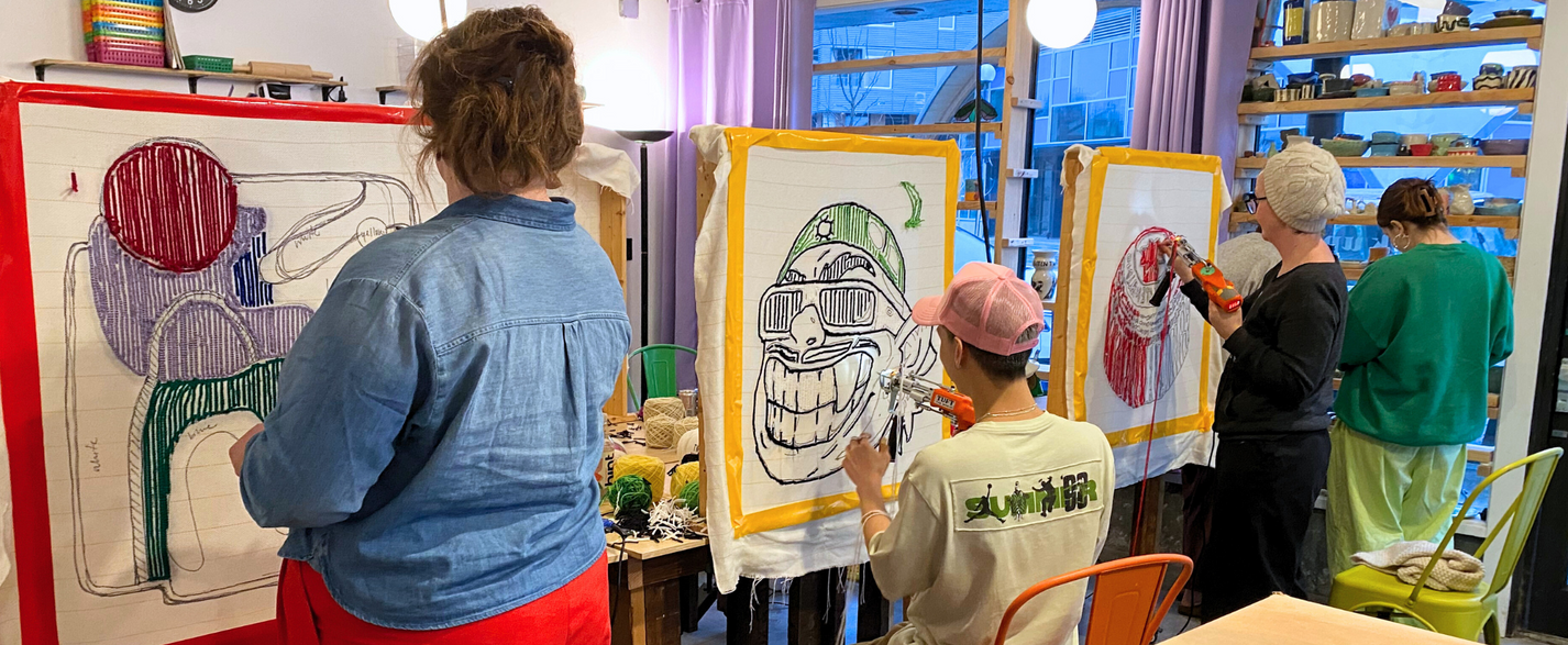 Participants will be set up at their own workspace including a tufting machine, frame, backing fabric, tools + supplies. Using a projector, participants will easily transfer their chosen design onto the tufting frame. Emily will guide the process start-to-finish, answering any questions along the way!