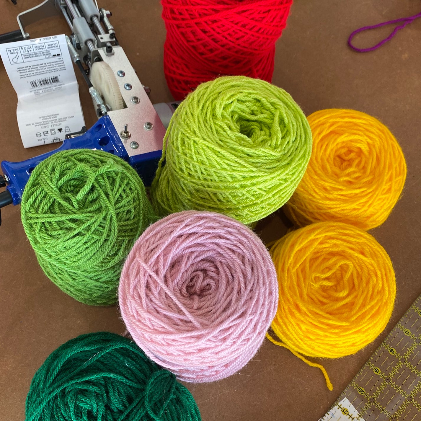 • NO SHINY, SUPER SOFT or FUZZY YARN (it will jam the machine)
